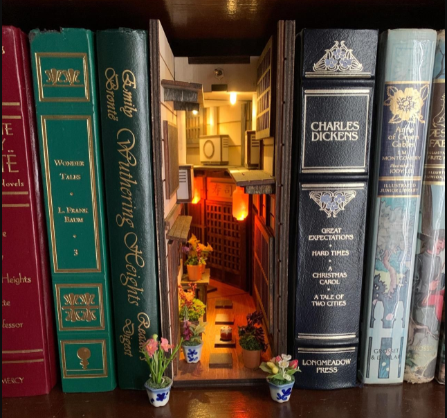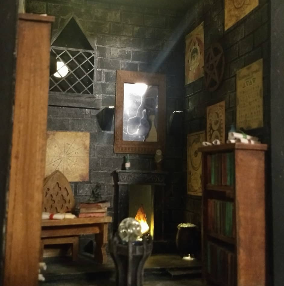 When I hear the phrase “midnight library”, I think to myself: Time to light up the book nook on my book shelf! Just look at this tiny wizard’s quarters, with its tiny table and tiny library of its own and its TINY PENTAGRAM.